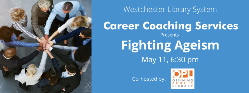 Westchester Library System Career Coaching Services presents Fighting Ageism. May eleventh at six thirty p m. Co-hosted by Ossining Public Library.